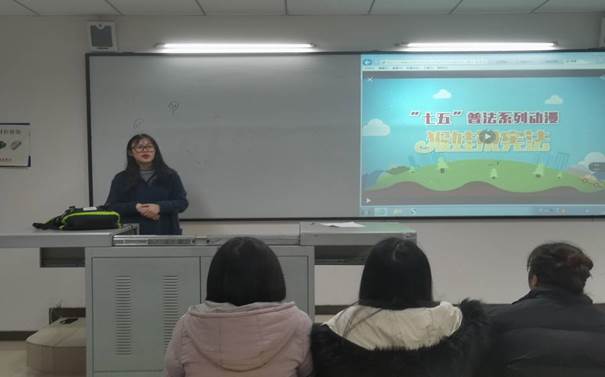 科技处负责人赵宛莹在活动启动仪式上致辞,强调宪法是国家的根本大法,是治国安邦的总章程,具有最高的法律地位以及法律效益。国家宪法日的设立,昭示着国家全力推动人民树立法治信仰以及法律意识,对全面推进依法治国的战略有极大的意义。活动现场肃静,大家对宪法保持着极大的尊重。此时,视频采用浅显易懂的方式将宪法徐徐道之,增强了人民的法制观念和法律意识,鼓励大家在正当权益收到侵犯时,用法律的武器维护自身合法利益。