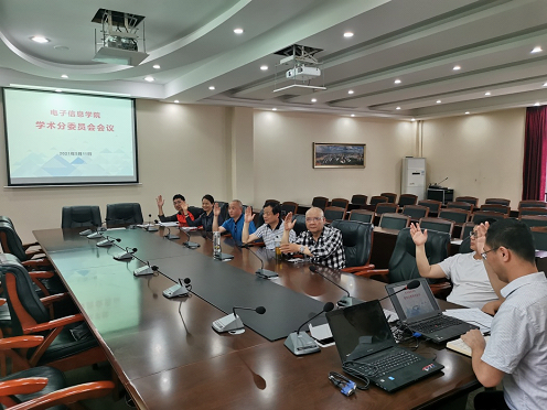 本网讯(图/文 电子信息学院)2021年5月11日上午11:00,电子信息学院在第七会议室召开学术分委员会会议,对我院首批校级重点建设学科信息与通信工程的学科带头人、学术带头人进行评审,电子信息学院学术分委员会委员参加了本次会议,会议由副院长陈成瑞主持。