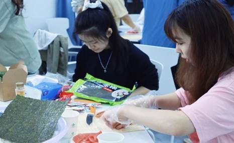 同学们制作完成后,分别品尝和点评了另一组制作的寿司,都给予了满意的评价。同学们皆认为此次团建收获颇丰,充分体会到了团队合作的重要性,也锻炼了自己的动手能力;在团队合作之时感受到的快乐和成就感丰富了校园生活,彰显我们的青春活力。