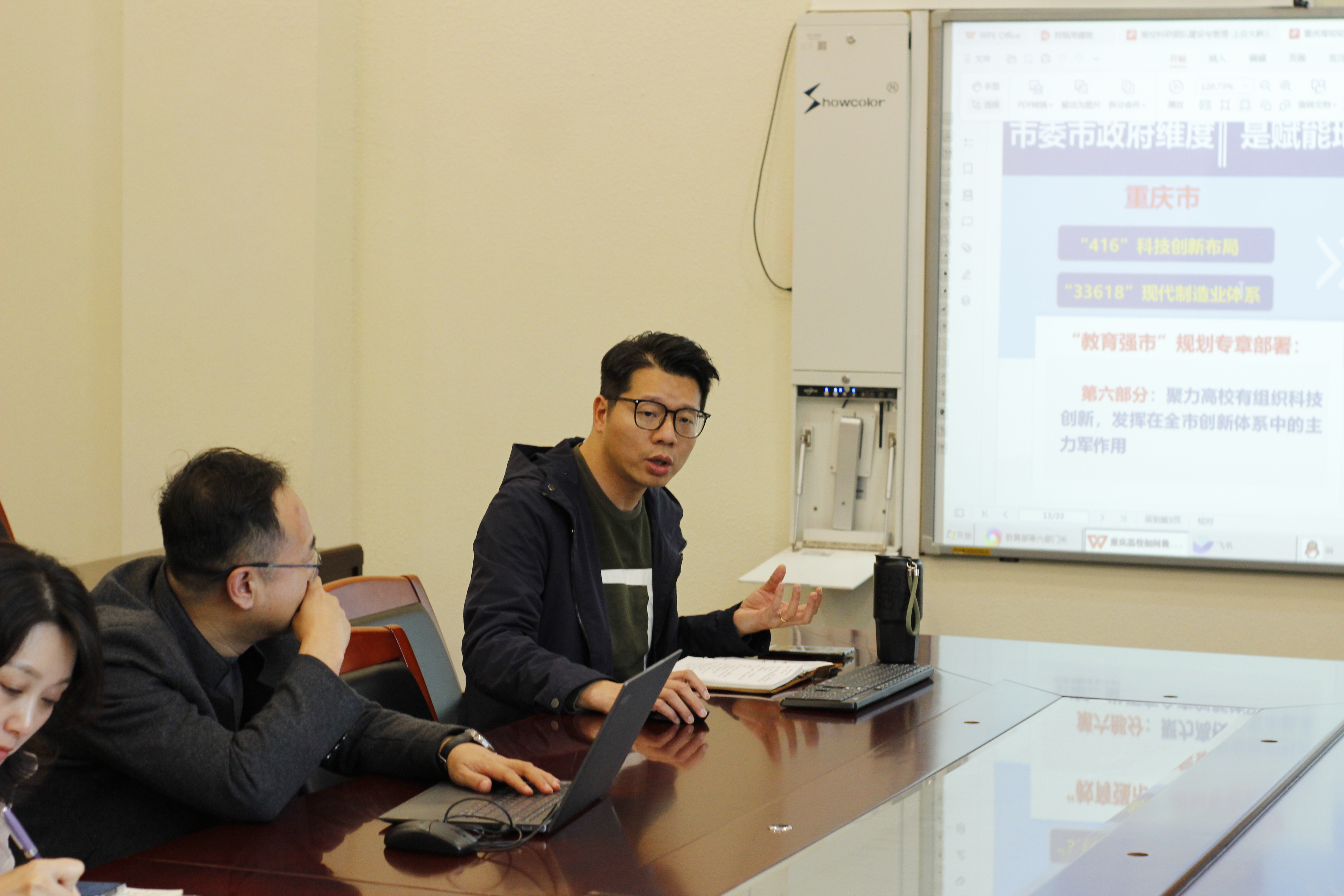 培训会上,科技处副处长汪俊良带领全体人员传达学习了重庆市高校科研管理人员高级培训班的相关资料,以及《教育部等六部门关于加强新时代高校青年教师队伍建设的指导意见》等文件内容。汪俊良强调,学校科研工作,一定要紧密对接重庆市“33618”现代制造业集群体系建设和“416”科技创新战略布局,与学校新阶段发展目标同向而行,以“有组织科研”和“教育强市区县行”专项活动为抓手,充分挖掘学科科研建设潜力,着力做好科研反哺教学,积极探索,创新实践,力求为学校高质量发展提供坚强支撑。