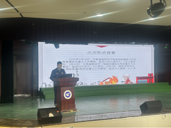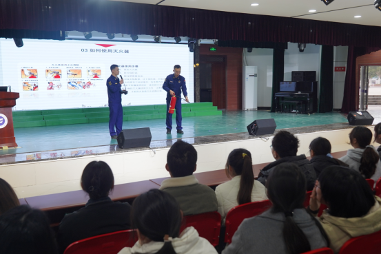 消防大队胡参谋采取现场授课、示范宣讲、互动体验等形式,为我校区师生及宿舍管理员、微型消防站队员等进行宣传帮扶指导工作,普及防火、灭火、逃生等知识,指导宿舍管理员和微型消防站队员查改火灾隐患及灭火救援等技能,真正构建长效“防火体”,着力提升我校消防安全标准化管理工作。