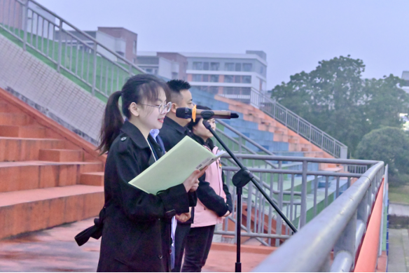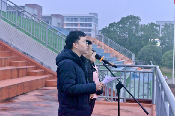 双桥校区综合办副主任、思想政治理论课教师黄守强分享了三个关键词:坚守、传承和家国情怀。祝福同学们在新学期能在奋斗中踏出一条属于自己的路,找到属于自己的光芒,为祖国的未来贡献青春力量。24 电商 7 班的张娜萍作为学生代表也向同学们分享三个关键词:规划、深耕和温度。