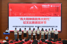 随后,大足区委党史研究室调研员王大革、大足区委党校教务科科长、副教授李远丹唐小勇书记分别伟大精神铸就伟大时代征文比赛获奖学生颁奖。获奖学生代表在发言中号召同学们我们不仅要做伟大精神的传承者,更要做伟大时代的续写者。