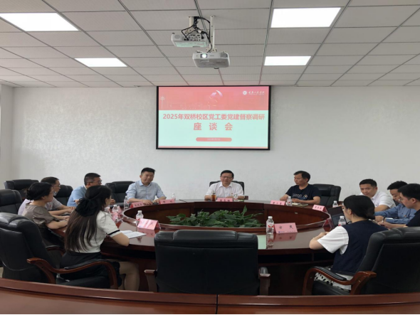 为深入贯彻落实全面从严治党要求,加强基层党组织建设,推动党建工作高质量发展,5月13日上午,党委书记陈长虹在双桥校区第二会议室召开2025年双桥校区党工委党建督察调研座谈会。党委副书记、双桥校区管委会主任唐小勇,校长助理、双桥校区党工委书记邹均出席座谈会,党委组织部、党委宣传部及双桥校区党工委相关部门负责人参加了会议。会议围绕“一融双高”“党建双创”等核心议题,深入探讨了党建工作与事业发展融合的成效与路径。