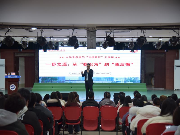 本网讯(文/双桥校区管委会 范洋 图/双桥校区管委会 杨世玲、黄守强)为深入推进法治校园建设,切实增强广大师生法治意识和安全防范能力,3月19日下午,校区在办公楼报告厅隆重举行“一步之遥:从‘我以为’到‘我后悔’——大学生身边的‘法律雷区’”主题法治公开课。校区管委会职能机构工作人员、学生工作办公室全体人员等600余名师生代表参加本次活动。校长助理、校区党工委副书记邹均主持活动。