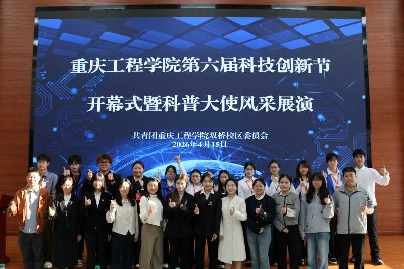 本网讯(文 / 双桥校区管委会 杨双溢 图 / 双桥校区新媒体中心)为深入推进校园科创文化建设,激发师生创新创造活力,搭建高水平科创实践平台,4月15日下午,重庆工程学院第六届科技创新节开幕式暨科普大使风采展演在双桥校区三教报告厅(S3605)隆重举行。双桥校区管委会、校区团委相关领导及师生代表齐聚现场,共同见证科创盛会的开启。