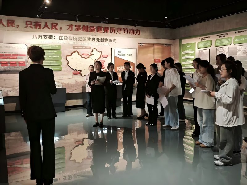 本次考核以实战为导向,考核流程规范有序。考核伊始,团员以展区为单位自主开展自由练习,打磨讲解内容、调整仪态走位、熟悉讲解节奏。随后,博物馆指导老师围绕内容掌握、语言表达、肢体仪态、临场表现等方面,开展全方位严格考核。同学们精神风貌良好,深情讲述三线建设故事与红岩文化内涵,展现扎实训练成果。