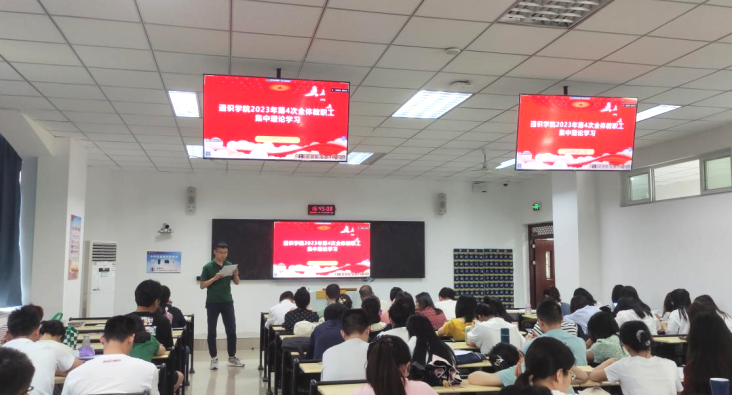 (本网讯 图/文 通识学院 杨佳丽) 凝心铸魂,奋进新征程。为扎实推进学习贯彻习近平新时代中国特色社会主义思想主题教育系列活动,全面贯彻党的二十大精神,进一步落实立德树人根本任务,加快推进学校高质量发展,提升人才培养质量。5月17日17:00,通识学院在双桥校区第一教学楼202开展了2023年第4次全体教职工集中理论学习。通识学院党总支副书记、副院长张楠担任领学人,副校长、双桥校区管委会主任、通识学院院长杨桂出席,学院全体教职工参加。