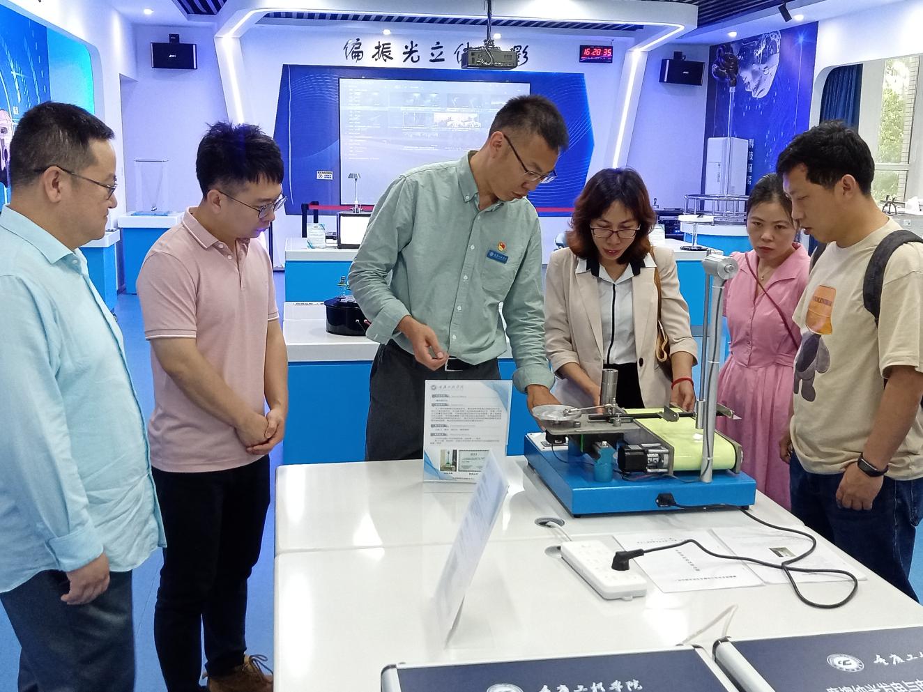 交流活动结束后,陈玲一行参观了大学物理和大学英语实验教学中心。张楠从实验仪器的配置到实验课程的设置,从实验室安全管理到学生创新成果产出,详细地介绍了学校和学院在实验室建设与管理方面的方法举措。