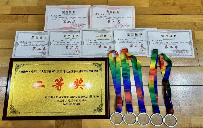 (文图/基础学院 敖丽)近日,由大足区教委、文化和旅游发展委员会联合主办的“奔跑吧·少年”大足石刻杯第六届学生乒乓球比赛在区体育中心篮球馆举行。我校学子团结协作、顽强拼搏,凭借出色的球技和坚韧的毅力,荣获甲组女子团体第二名、女子团体总分第二名,纪新令、曾燕玲两位同学分获单打第五、第六名,带队老师敖丽获评“优秀教练员”。