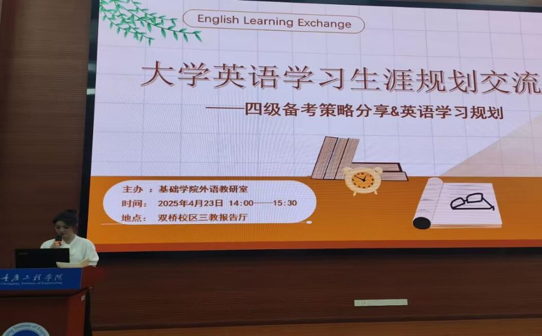 为激发学生英语学习热情,提升备考效率,科学规划学业发展,基础学院于2025年4月23日14:00在双桥校区三教报告厅举办了“大学英语学习生涯规划交流会——四级备考策略分享与英语学习规划”专题活动。