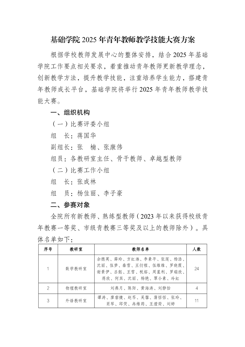 > 基础学院2025年青年教师教学技能大赛方案