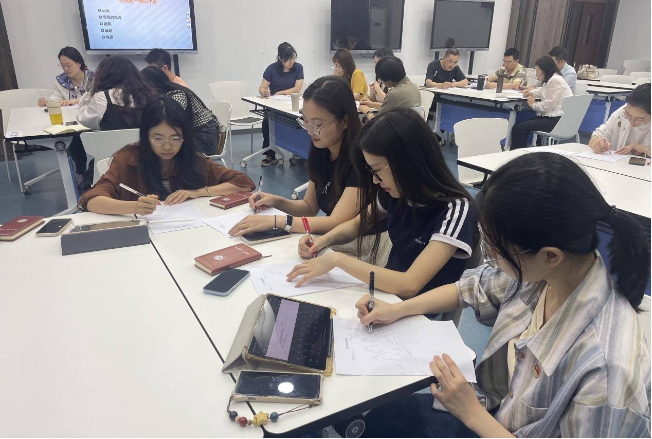 培训伊始,张院长别出心裁地请参会教师绘制一幅山水画,以这种新颖有趣的方式作为开场引入,迅速吸引了教师们的注意力,营造了轻松活跃的学习氛围。随后,张院长从教师面临的困惑以及教学发展的脉络出发,深入剖析了当前的教学背景,让教师们对教学现状有了更清晰的认识。在此基础上,他详细介绍了对分课堂教学模式,涵盖教学现状、对分课堂的基本流程、分类、原理以及现状等多个方面,为参会教师构建了全面且系统的理论框架。