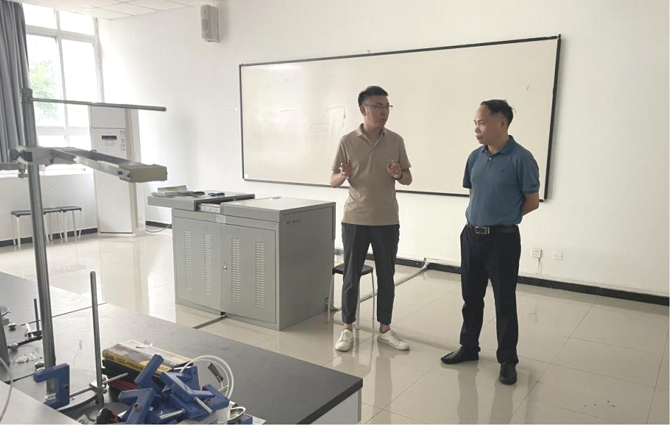 (文/图 杨佳丽)为切实保障暑期校园安全稳定,营造整洁、有序、健康的校园环境,让广大师生安心离校、平安度假,2025年7月8日,基础学院院长蒋国华率队开展暑假前实验室安全专项检查,对英语语音实验室、物理实验室、计算机基础实验室等重点场所进行全面检查,确保放假期间实验室的安全稳定,消除潜在安全隐患。