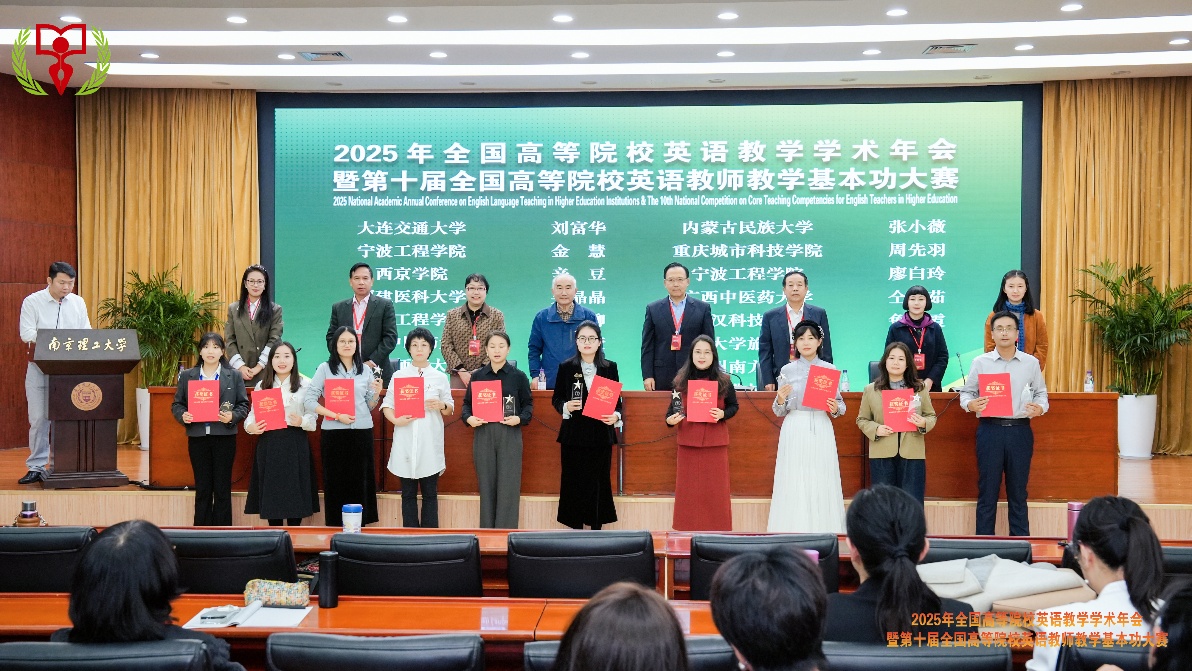 本网讯(文/图 基础学院 黄柳)2025年10月26日,第十届全国高等院校英语教师教学基本功大赛全国总决赛在江苏南京落下帷幕。我校基础学院外语教研室教师黄柳、蹇佳、周丹、丁福聚代表学校参赛,与来自全国220所高校的优秀教师同台竞技,凭借扎实的教学功底和出色的现场表现共斩获国家级奖项3项、省部级奖项3项,实现了教学竞赛与学术研究的双重突破。