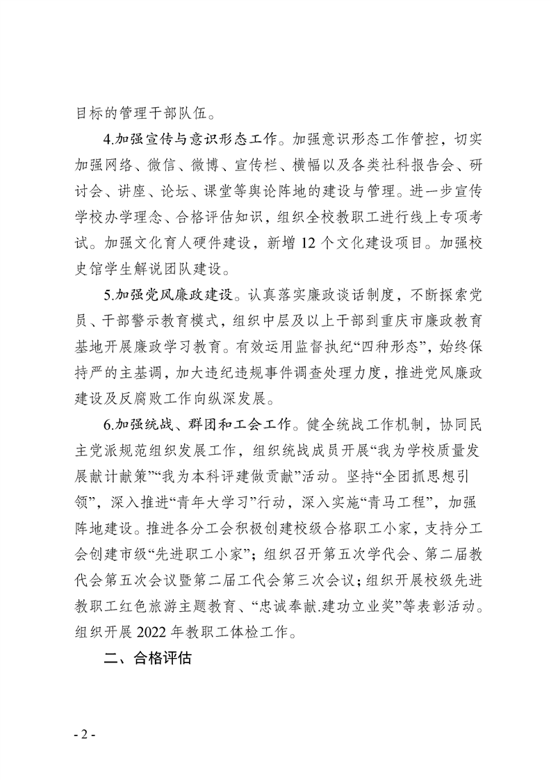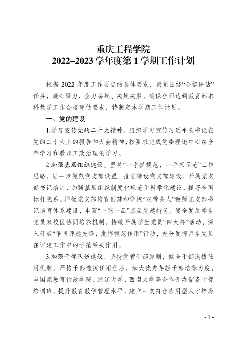 重庆工程学院2022-2023学年度第1学期工作计划