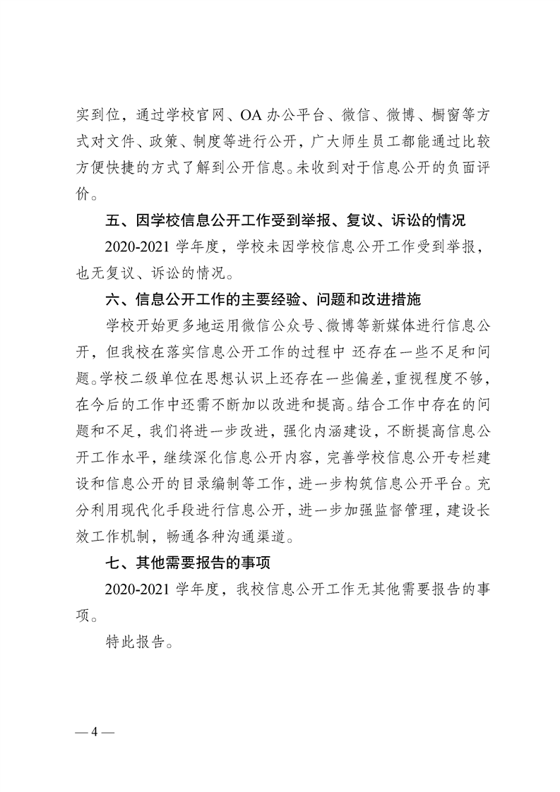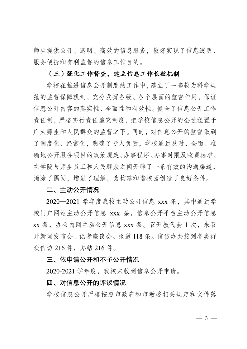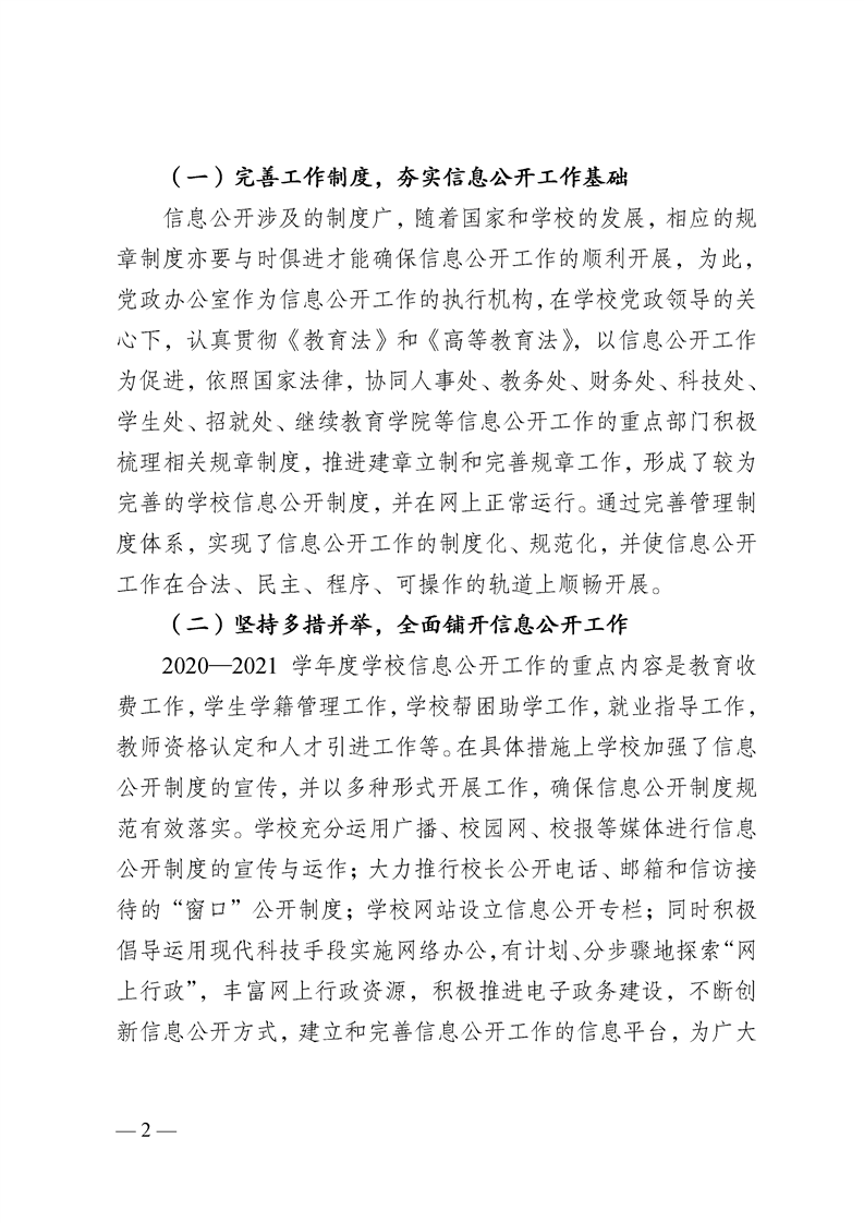 > 2020-2021学年度信息公开工作年度报告