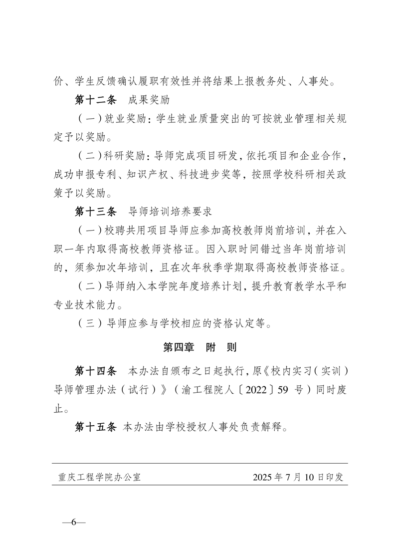 当前位置:首页 > 人事师资 > 重庆工程学院校内岗位制教学导师管理办法