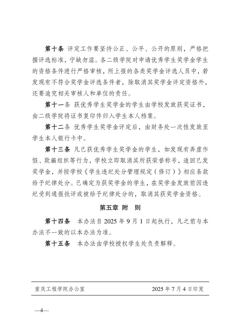 重庆工程学院优秀学生奖学金评定办法(2025年修订)