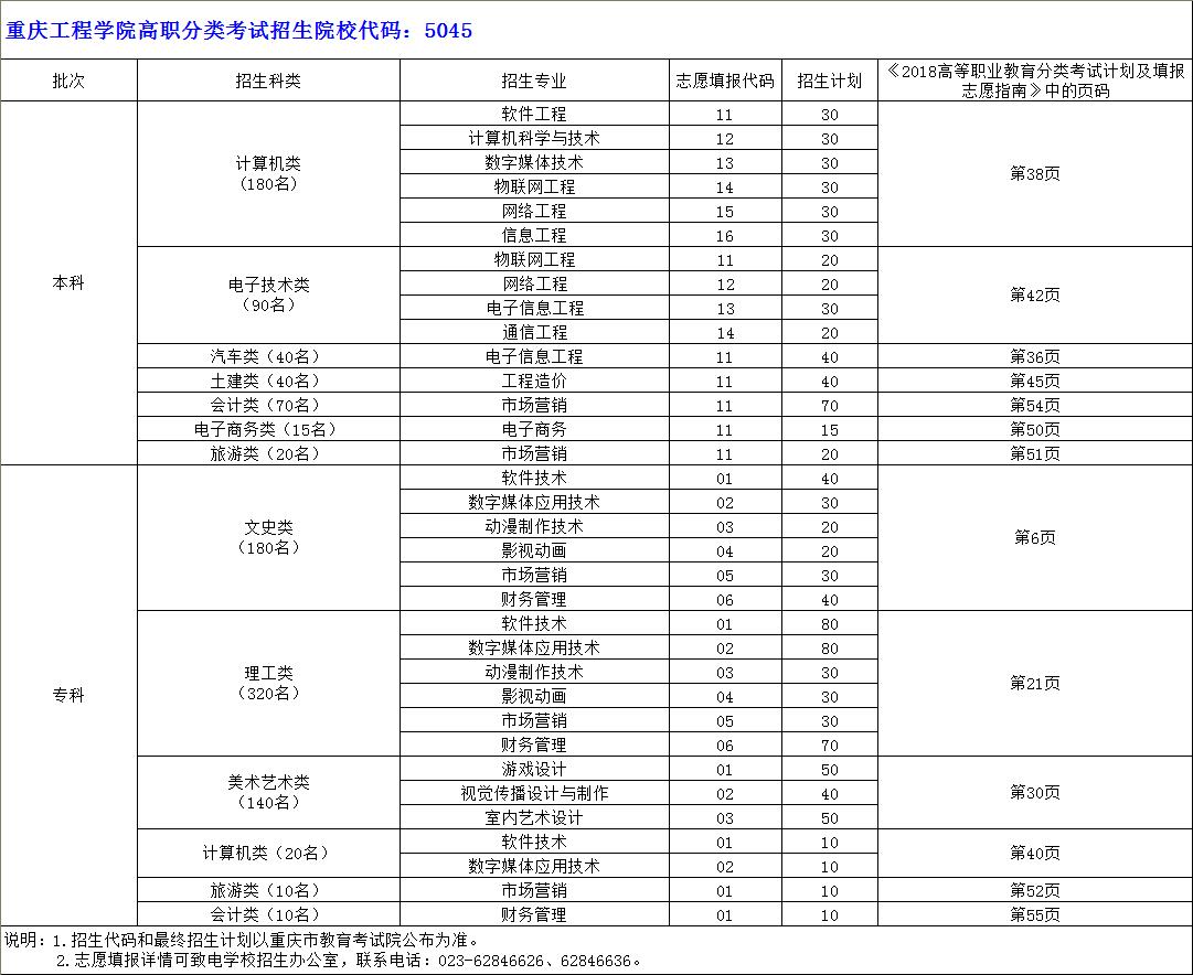 2018年高职分类考试招生专业代码及志愿填报书籍页码