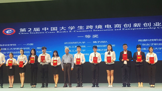 学生在第二届中国大学生跨境电子商务创新创业大赛国赛中获得一等奖