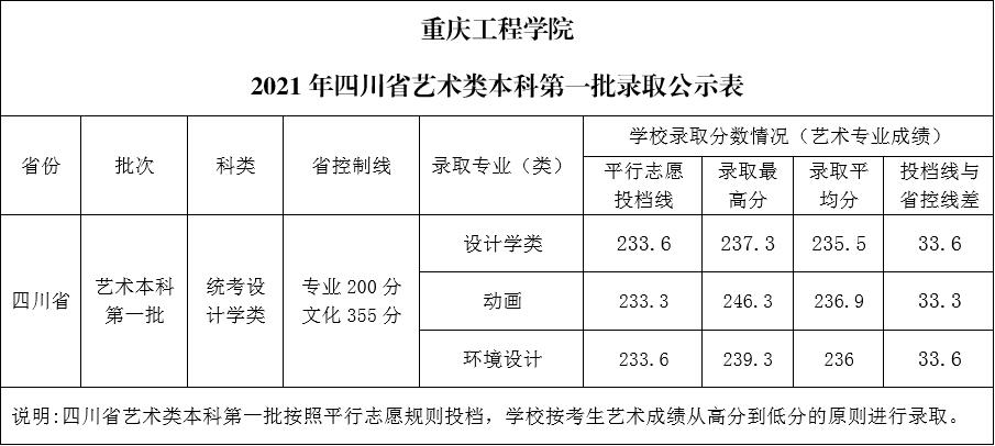 根据四川省2021年普通高校招生录取进程,我校已完成了四川省艺术类本科第一批(统考设计学类)的录取工作,招生计划已录取满额,考生可以登录四川省教育考试院网站(http://cx.sceea.cn/)或学校阳光招生网(http://42.247.25.91:8088)查询录取轨迹及录取信息,新生录取通知书将于7月26日后采用中国邮政特快专递(EMS)的形式寄出,请录取的考生在近期保持手机的畅通并注意查收。如有疑问,请致电重庆工程学院招生办公室,联系电话:023-62846626、62846636。