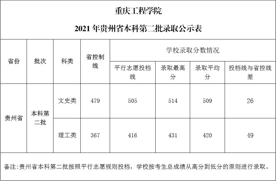 根据贵州省2021年普通高校招生录取进程,我校已完成了贵州省本科第二批(文理类)的录取工作,招生计划已录取满额,考生可以登录贵州省招生考试院网站(http://www.eaagz.org.cn)或学校阳光招生网(http://42.247.25.91:8088)查询录取轨迹及录取信息,新生录取通知书将于8月2日后采用中国邮政特快专递(EMS)的形式寄出,请录取的考生在近期保持手机的畅通并注意查收。如有疑问,请致电重庆工程学院招生办公室,联系电话:023-62846626、62846636。
